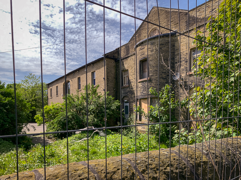 The first part of the workshop was a short guided walk along the River Calder and the adjacent Calder and Hebble Navigation, a waterway built in the 1700s to extend the routes in the area that were navigable by barges, necessary for trade. Our focus was exploring how the area has been shaped over the years by its industrial past and its impact on the environment. We started on Elland Bridge, built in the 1850s. (The pillared building on the far side was once a bank.)