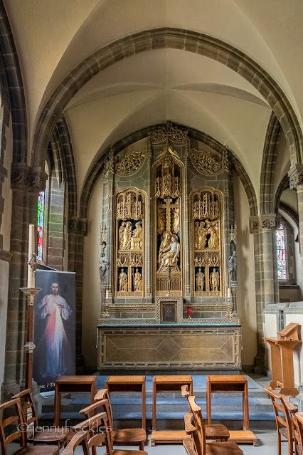 I'm afraid I didn't really like Ampleforth Abbey Church. I found it very austere and very heavy looking. It felt cold and unspiritual to me. However, it is always interesting to explore new places. I liked some of its modern stained glass rather more, which I will show tomorrow.